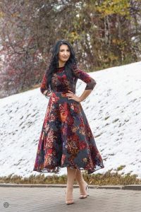 Croiala clos, midi tip printesa te duce cu gandul la sarbatoare, talia marecata, iar culorile neneclare din catifea fina pe matase te vor ajuta sa fii sic oriunde o vei purta fie ca e coktail sau seara de revelion.